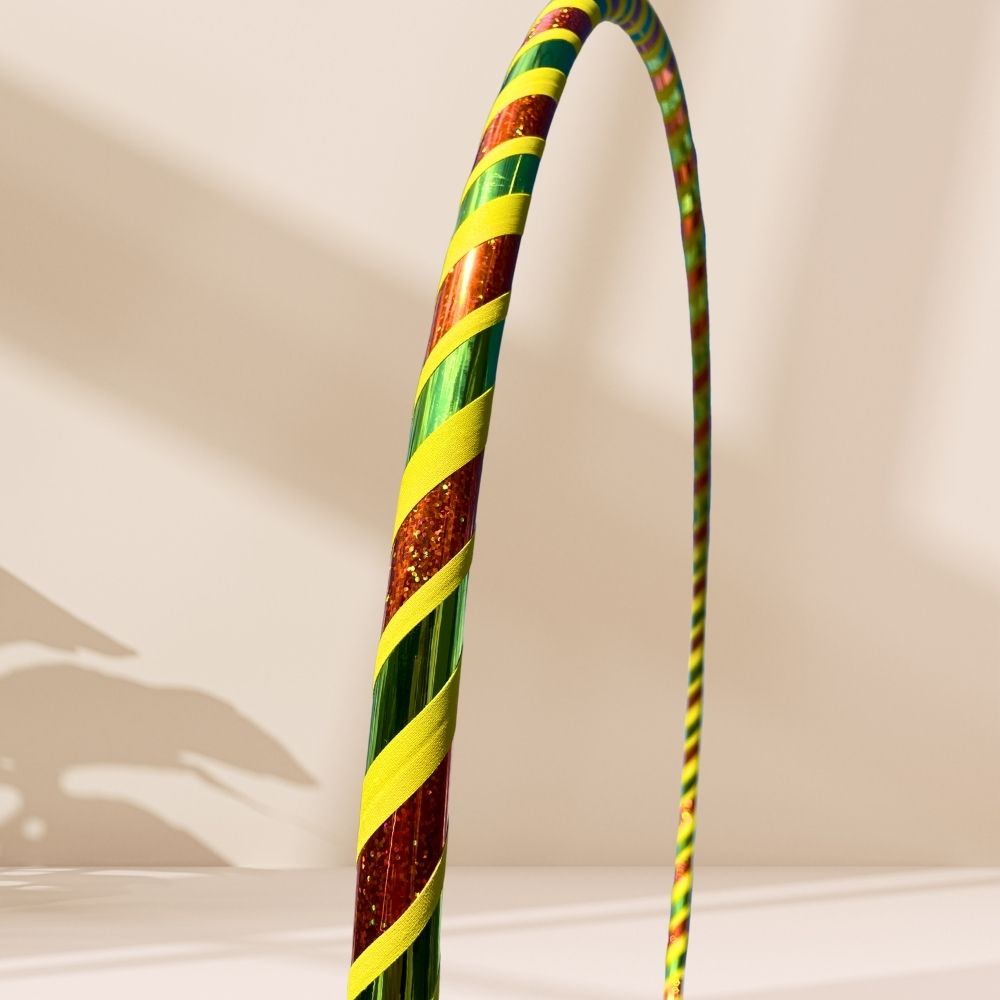 Der Autumn Leave Dance Hoop fängt die Magie des Herbstes ein – warm, erdend und voller sanfter Bewegung. Die harmonische Kombination aus Kupfer, Grün und Gelb erinnert an fallende Blätter, goldenes Licht und ruhige Waldspaziergänge. Kupfer strahlt Wärme und Tiefe aus, Grün steht für Balance und Naturverbundenheit, Gelb schenkt Leichtigkeit und Zuversicht. Bei jeder Drehung spiegeln sich die Farben weich im Licht und laden dich ein ganz bei dir anzukommen. Der Autumn Leave Dance Hoop ist perfekt für alle, die die Schönheit der Veränderung lieben.