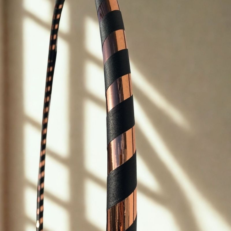 Der Copper Hula Hoop überzeugt durch seine klare, zeitlose Ästhetik und eine ruhige Eleganz. Umwickelt mit edlem Copper-Mirrortape und dezentem schwarzem Gaffertape entsteht ein harmonisches Zusammenspiel aus warmem Schimmer und puristischer Zurückhaltung. Das Spiegelband fängt das Licht sanft ein, ohne aufdringlich zu wirken, während das schwarze Gaffertape für sicheren Halt und eine angenehme Haptik sorgt. Schlicht, hochwertig und stilvoll – der Copper Hula Hoop ist die perfekte Wahl für alle, die ein minimalistisches Design lieben und dabei nicht auf Funktionalität verzichten möchten.