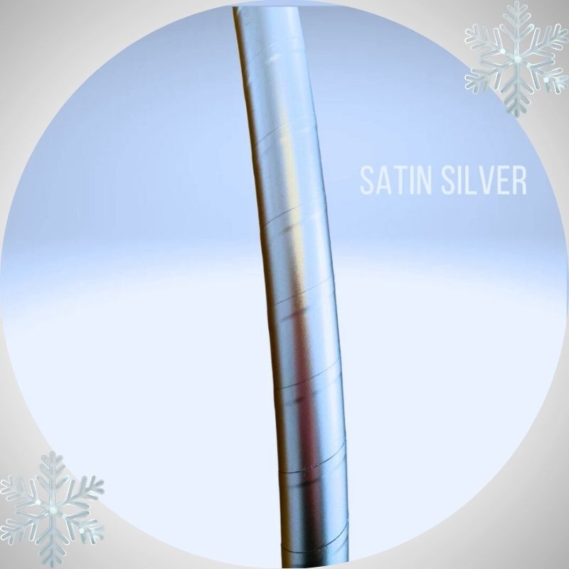 Der Hula Hoop „Silver Satin“ besticht durch seinen edlen Silberton und den sanften, seidigen Glanz des Satin Tapes für eine zeitlose, elegante Ausstrahlung.